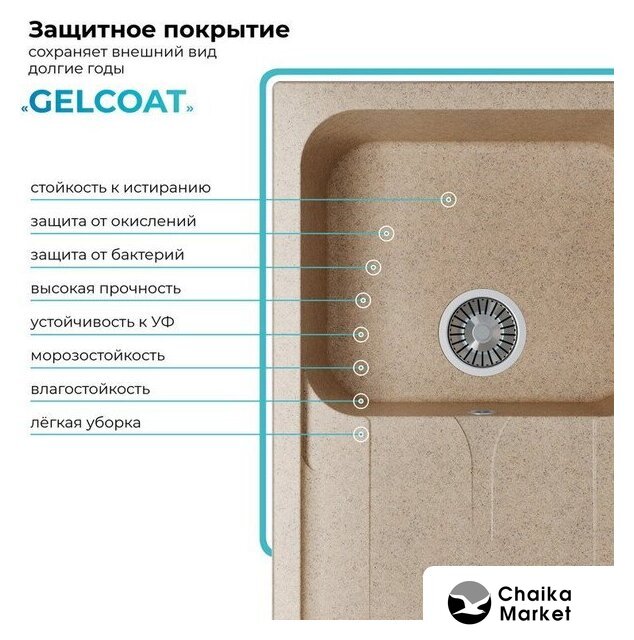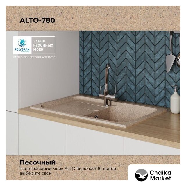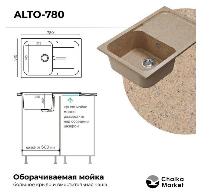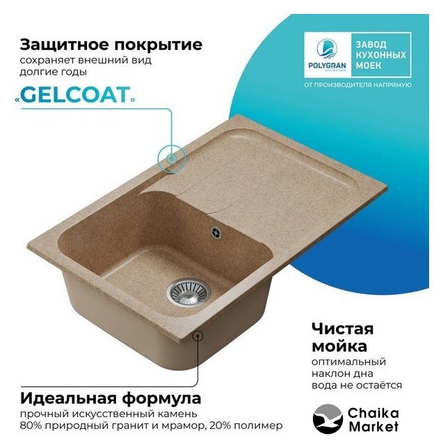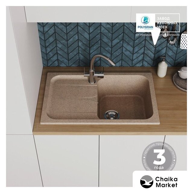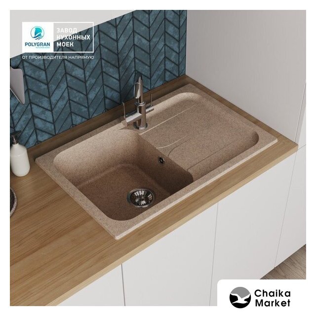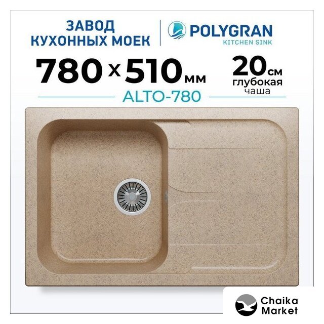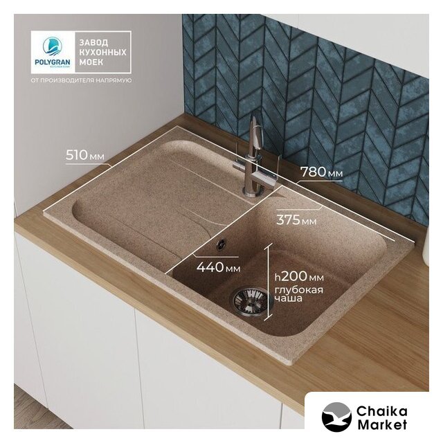 врезная на столешницу, искусственный камень, размеры: 51x78 см, глубина чаши: 20 см, в шкаф шириной от 50 см