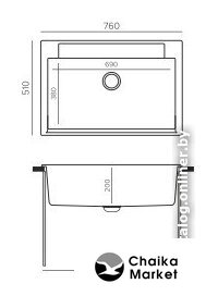 врезная на столешницу, нержавеющая сталь, размеры: 50x50 см, глубина чаши: 20 см