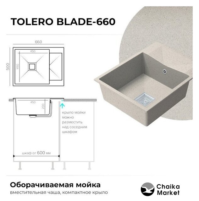 врезная на столешницу, искусственный камень, размеры: 66x50 см, глубина чаши: 20 см, в шкаф шириной от 50 см