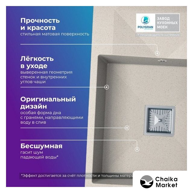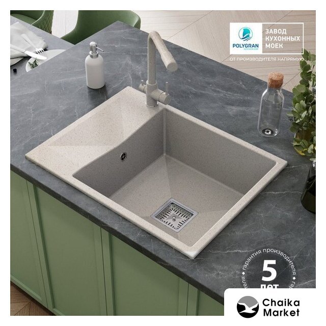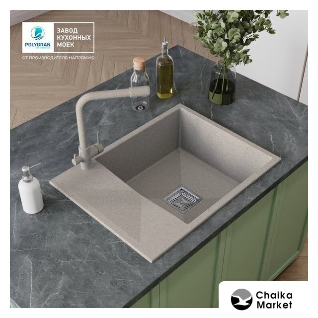 врезная на столешницу, кварц, размеры: 58x50 см, глубина чаши: 20 см, в шкаф шириной от 45 см