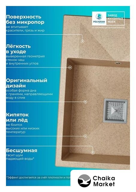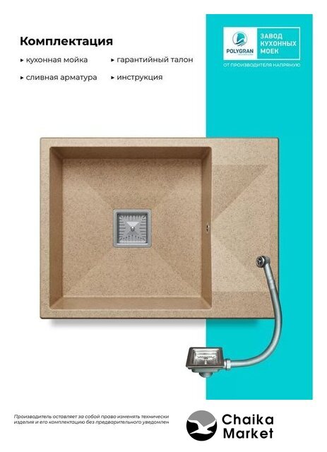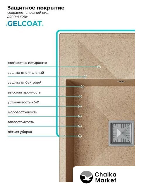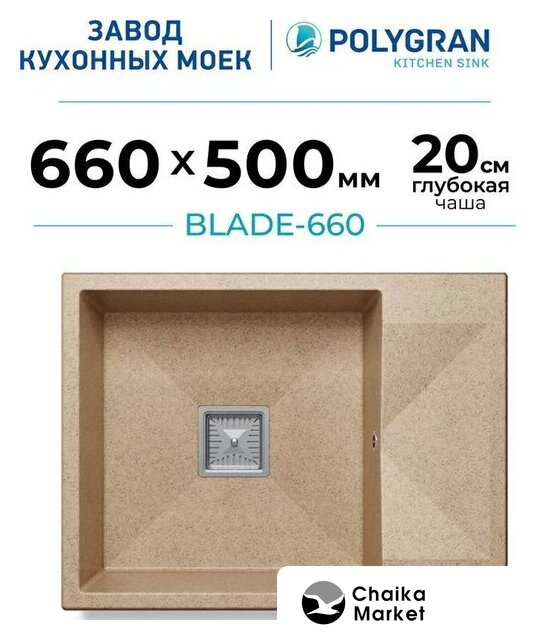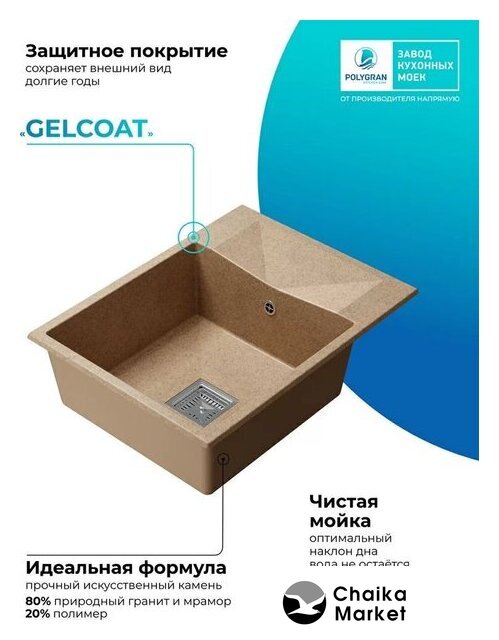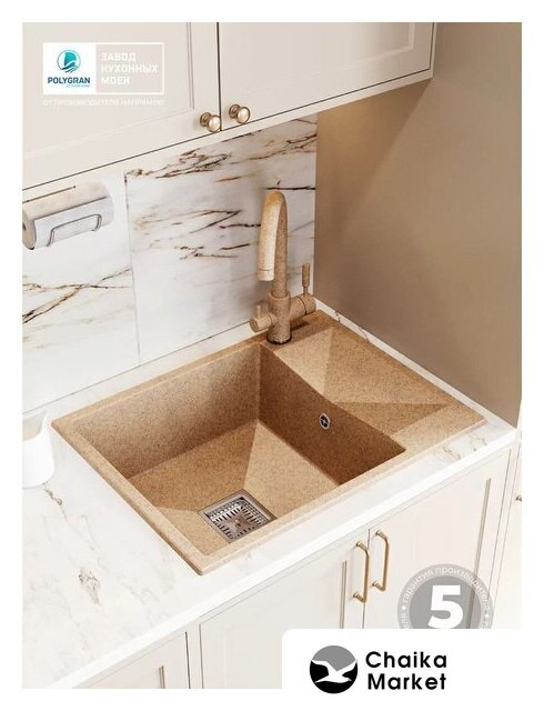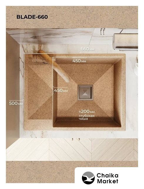 врезная на столешницу, искусственный камень, размеры: 50x66 см, глубина чаши: 20 см, в шкаф шириной от 60 см