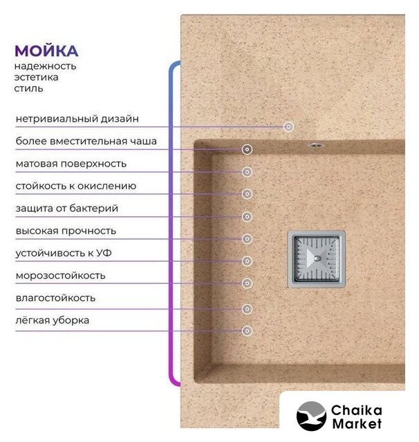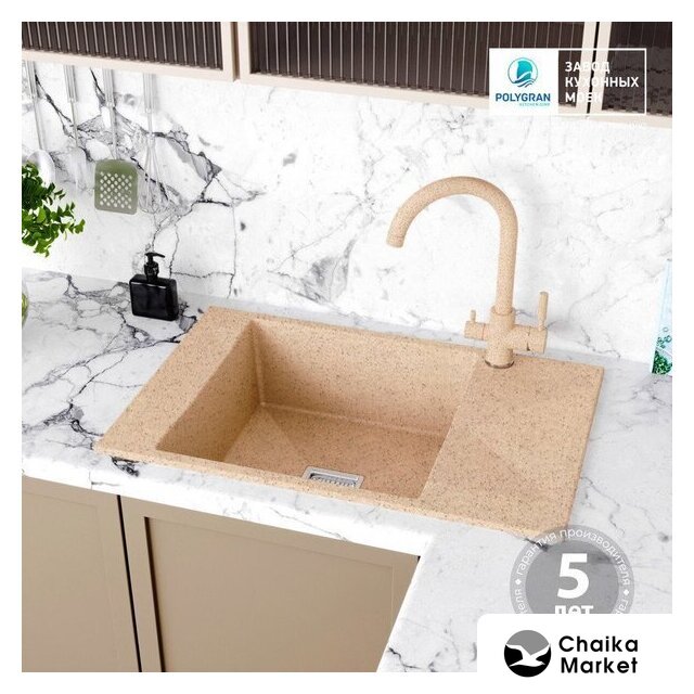 врезная на столешницу, искусственный камень, размеры: 61.5x50 см, глубина чаши: 18 см, в шкаф шириной от 40 см