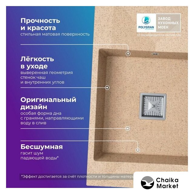 врезная на столешницу, искусственный камень, размеры: 58x49 см, глубина чаши: 18 см, в шкаф шириной от 50 см