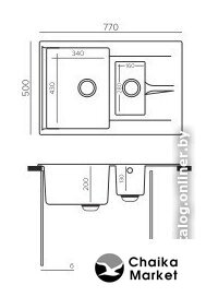 врезная на столешницу, искусственный камень, размеры: 77x50 см, глубина чаши: 20 см, в шкаф шириной от 80 см
