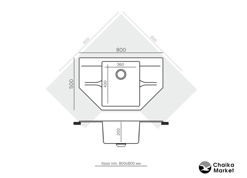 врезная на столешницу, нержавеющая сталь, фактура: матовая, размеры: 60x45 см, глубина чаши: 20.5 см, в шкаф шириной от 60 см