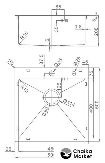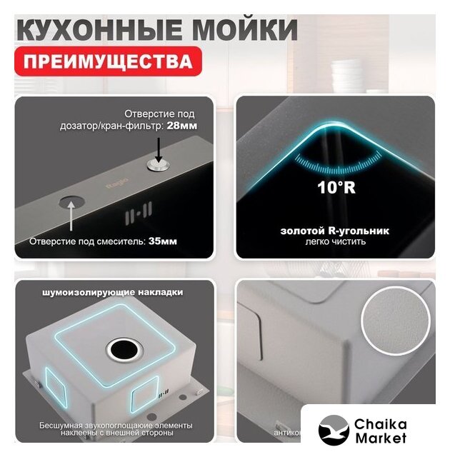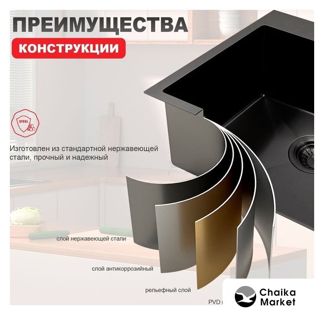врезная на столешницу, нержавеющая сталь, размеры: 50x50 см