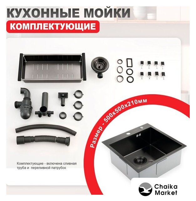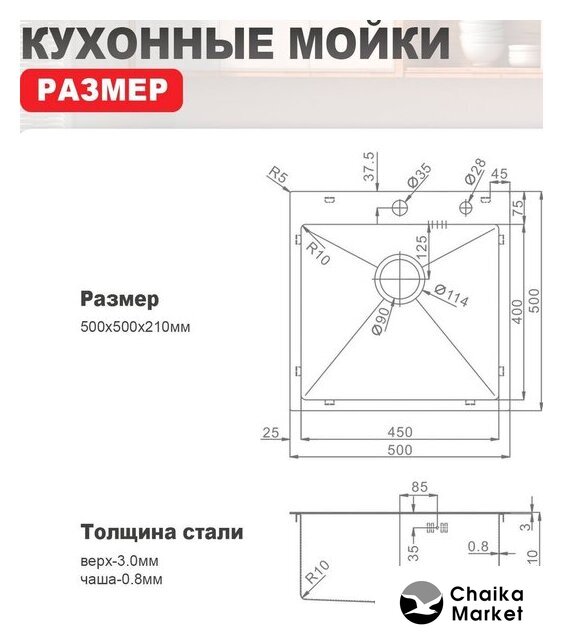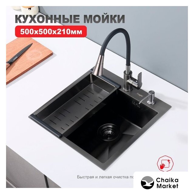 врезная на столешницу, нержавеющая сталь, размеры: 50x50 см, в шкаф 50 см