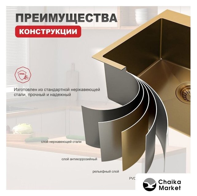 врезная под столешницу, нержавеющая сталь, фактура: матовая, размеры: 50x44 см, глубина чаши: 21 см, в шкаф шириной от 50 см