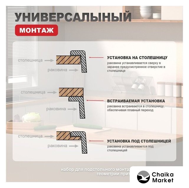 | Способ установки | врезная на столешницу |