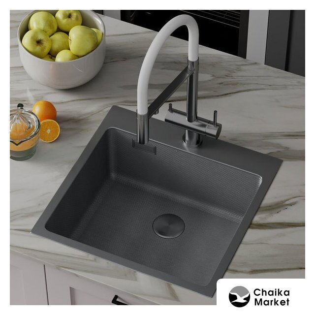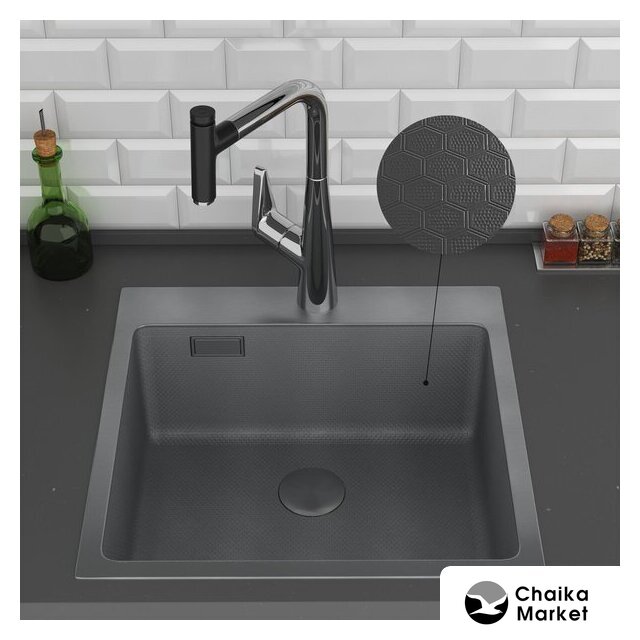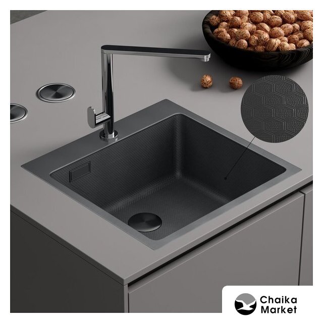 врезная под столешницу, кварц, фактура: матовая, размеры: 48.5x60.5 см, глубина чаши: 18 см, в шкаф шириной от 60 см