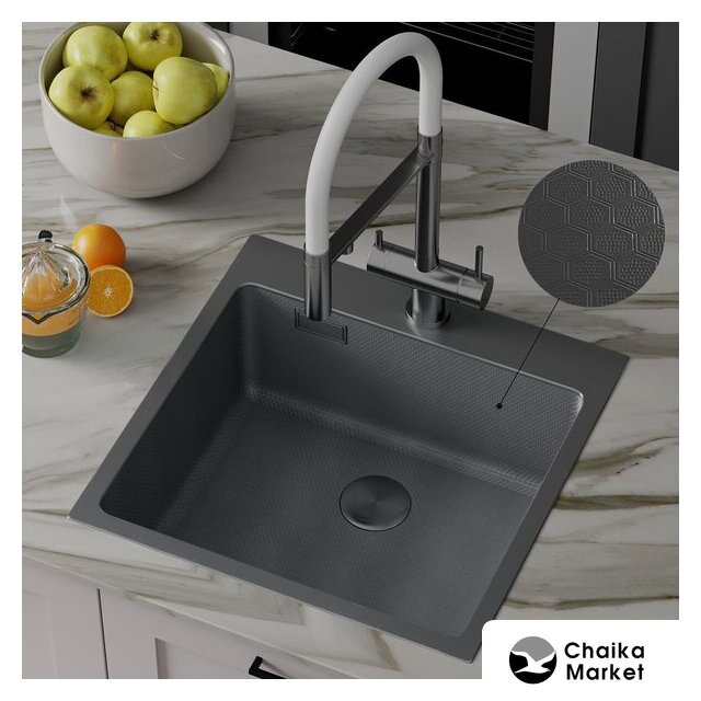 врезная на столешницу, искусственный камень, размеры: 51x52 см, глубина чаши: 20 см, в шкаф шириной от 60 см