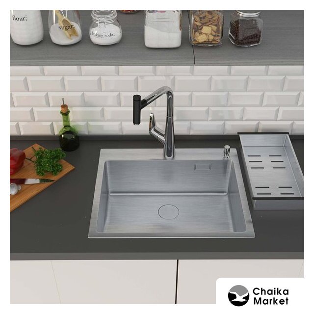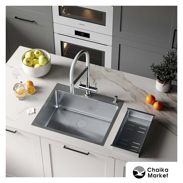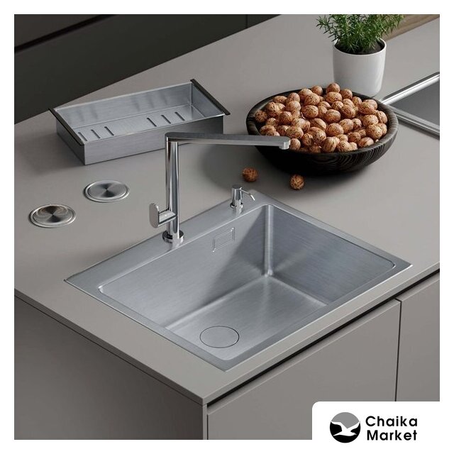 Комплектация | сифон с гофрой, коландер из нержавеющей стали, дозатор для моющих средств, корзинчатый вентиль, декоративная накладка, 2 заглушки на отверстия, комплект креплений к столешнице |