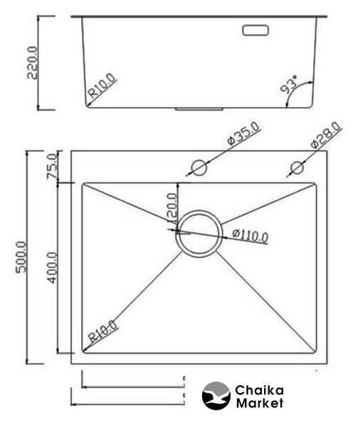 врезная на столешницу/врезная вровень со столешницей/врезная под столешницу, нержавеющая сталь, фактура: с текстурой, размеры: 50x65 см, глубина чаши: 22 см