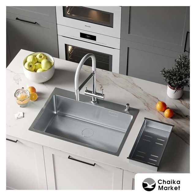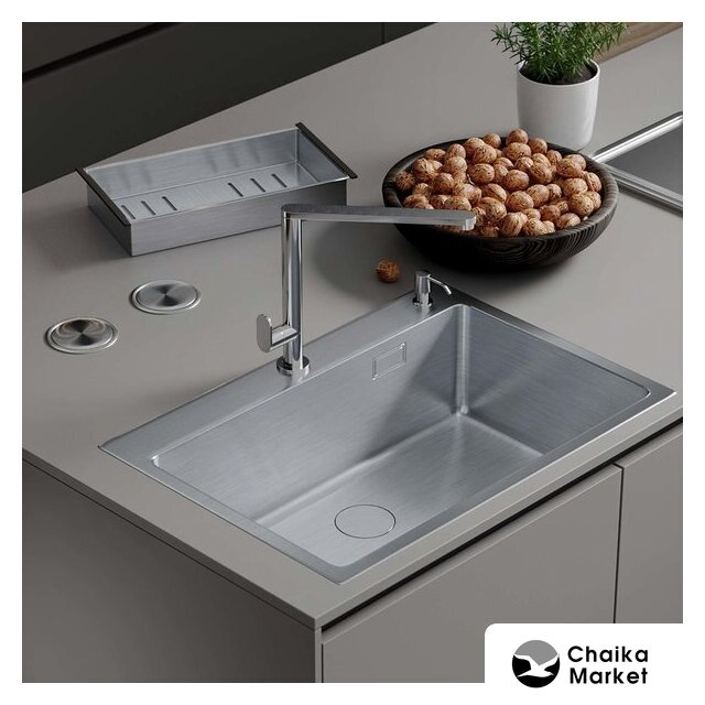 Комплектация | сифон с гофрой, коландер из нержавеющей стали, дозатор для моющих средств, корзинчатый вентиль, 2 заглушки на отверстия, комплект креплений к столешнице |