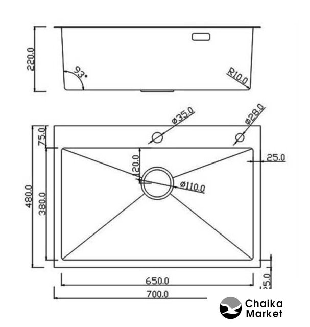 Длина мойки | 48 см |