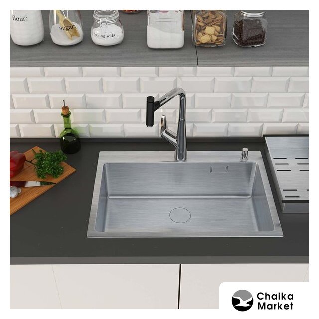 врезная на столешницу, нержавеющая сталь, фактура: с текстурой, размеры: 60x50 см, глубина чаши: 22 см