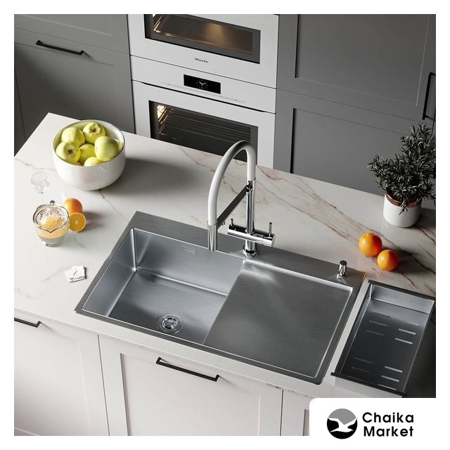 врезная на столешницу, нержавеющая сталь, фактура: сатин, размеры: 78x48 см, глубина чаши: 22 см