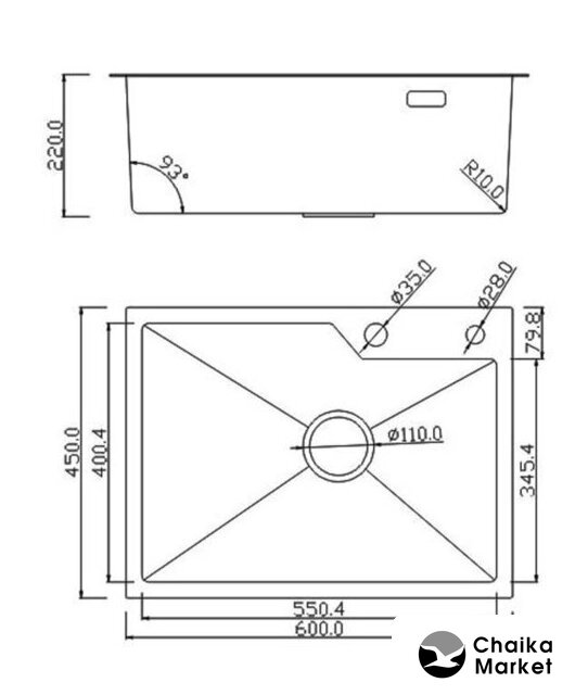 Диаметр сливного отверстия | 3.5" |