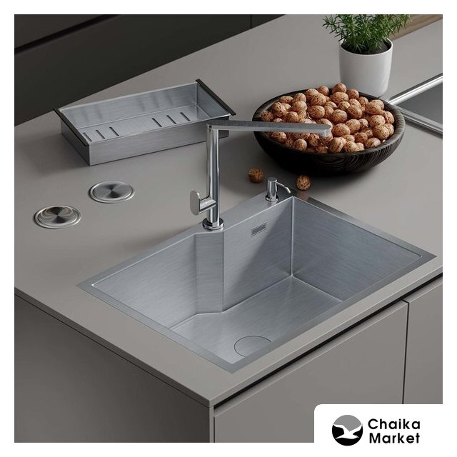 Комплектация | сифон с гофрой, коландер из нержавеющей стали, дозатор для моющих средств, корзинчатый вентиль, 2 заглушки на отверстия, комплект креплений к столешнице |