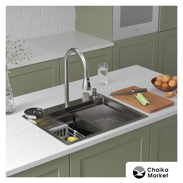 Комплектация | ✅Смеситель✅Ринзер (омыватель стаканов)✅Доска разделочня✅Сифон✅Дозатор для моющих средств✅Коландер телескопический✅Коландер ✅Корзинчатый вентиль с декоративной накладкой✅Комплект креплений к столешнице |