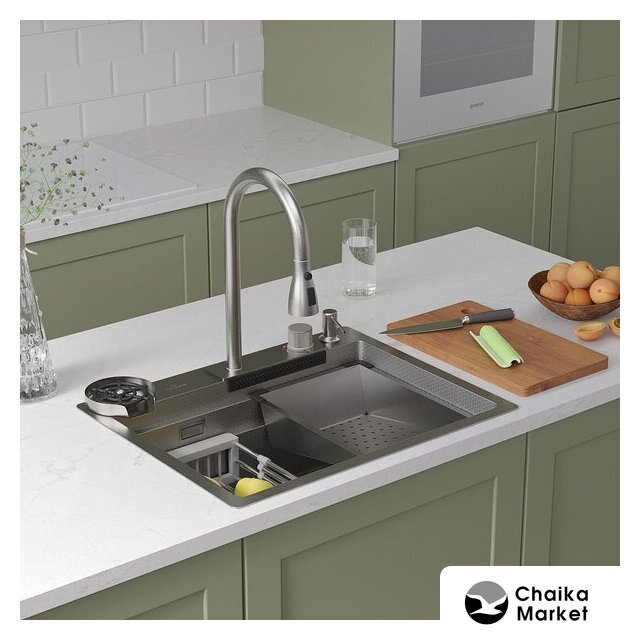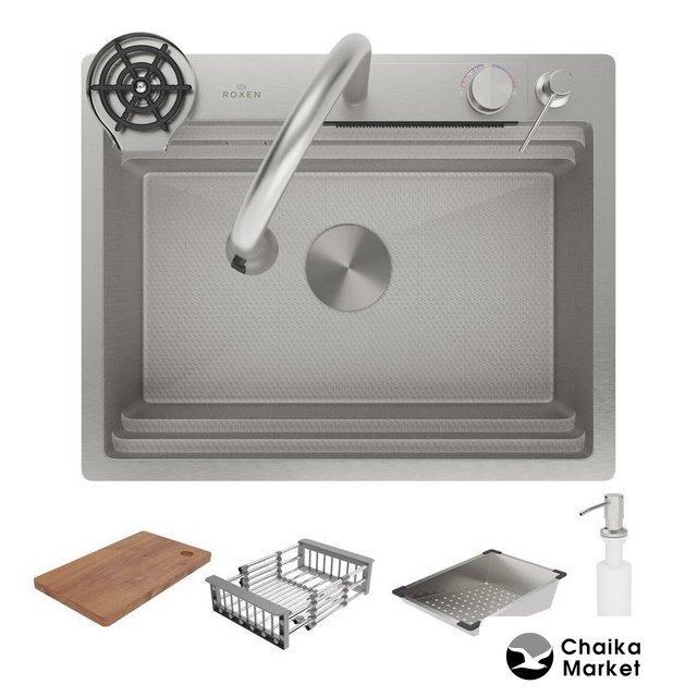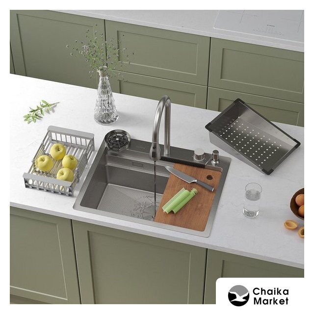Комплектация | ✅Смеситель✅Ринзер (омыватель стаканов)✅Доска разделочня✅Сифон✅Дозатор для моющих средств✅Коландер телескопический✅Коландер ✅Корзинчатый вентиль с декоративной накладкой✅Комплект креплений к столешнице |