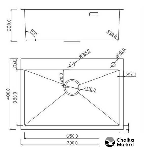 врезная на столешницу, нержавеющая сталь, фактура: сатин, размеры: 65x48 см, глубина чаши: 22 см