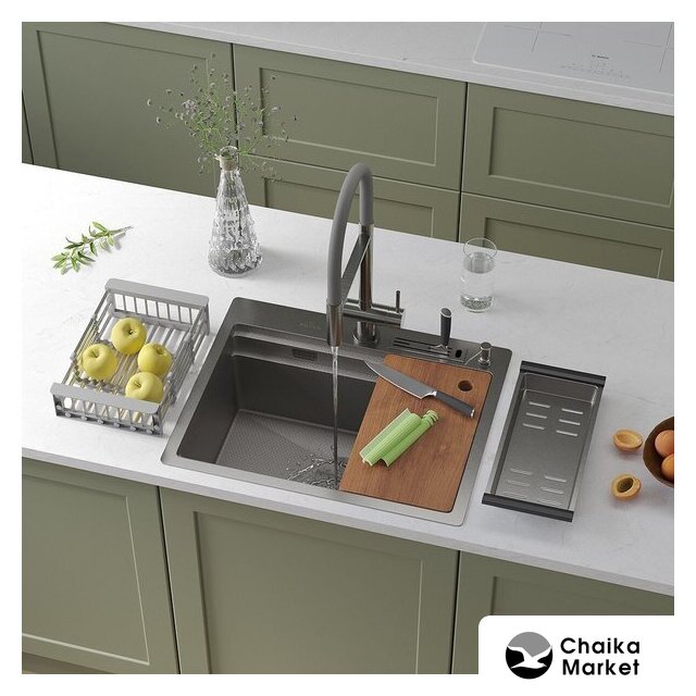 | Комплектация | ✅стальная мойка✅сифон✅корзинчатый вентиль✅декоративная накладка✅держатель для ночей✅коландер из нержавеющей стали✅коландер телескопический✅дозатор для моющих средств✅разделочная доска✅2 заглушки на отверстия✅комплект креплений к столешнице |