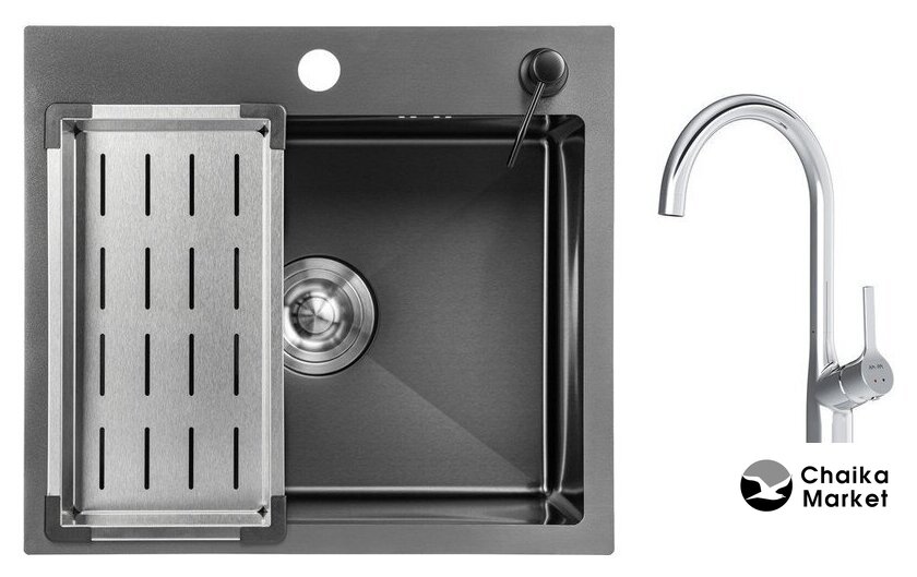 | Комплектация | Мойка кухонная Saniteco 5045 Nano (с сифоном, дозатором и коландером); Смеситель AM.PM Spike F9S07000 (хром) |