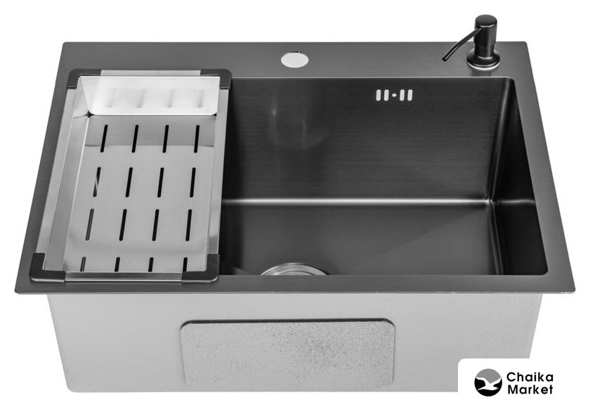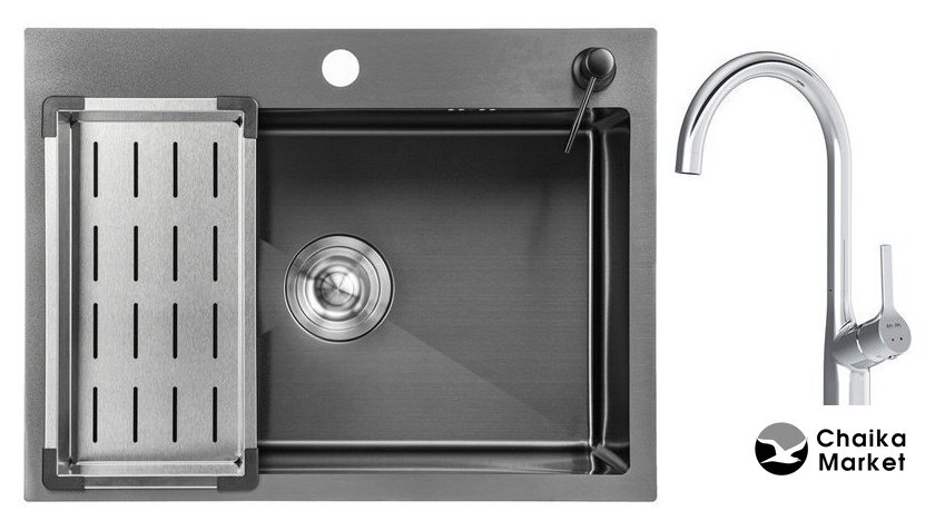 Комплектация | мойка кухонная Saniteco 6045 Nano (с сифоном, дозатором и коландером); Смеситель AM.PM Spike F9S07000 (хром) |
