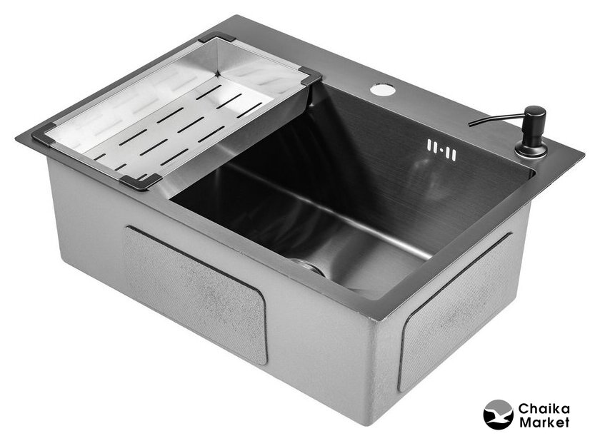 Комплектация | Мойка кухонная Saniteco 6045 Nano (с сифоном, дозатором и коландером); Смеситель AM.PM Spike F9S07011 (сатин) |