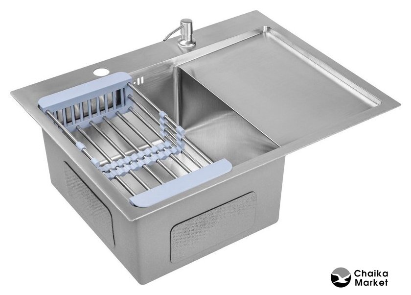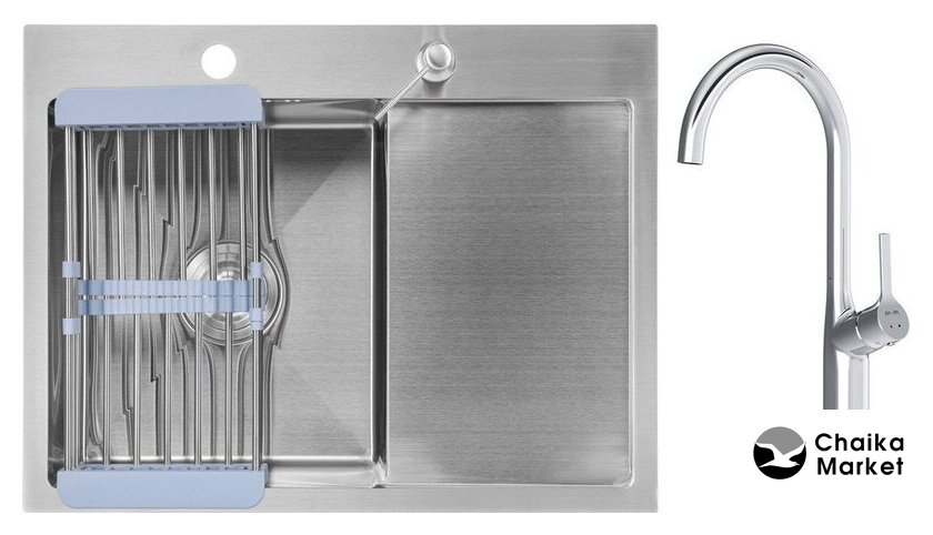 Комплектация | Мойка кухонная Saniteco 6550-L (с сифоном, дозатором и коландером); Смеситель AM.PM Spike F9S07000 (хром) |