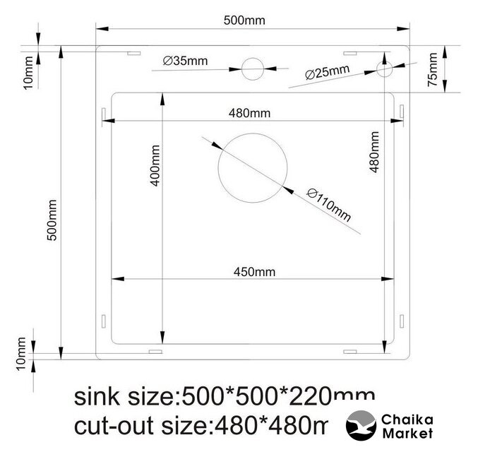 врезная под столешницу, нержавеющая сталь, фактура: сатин, размеры: 45x42 см, глубина чаши: 20 см, в шкаф шириной от 45 см