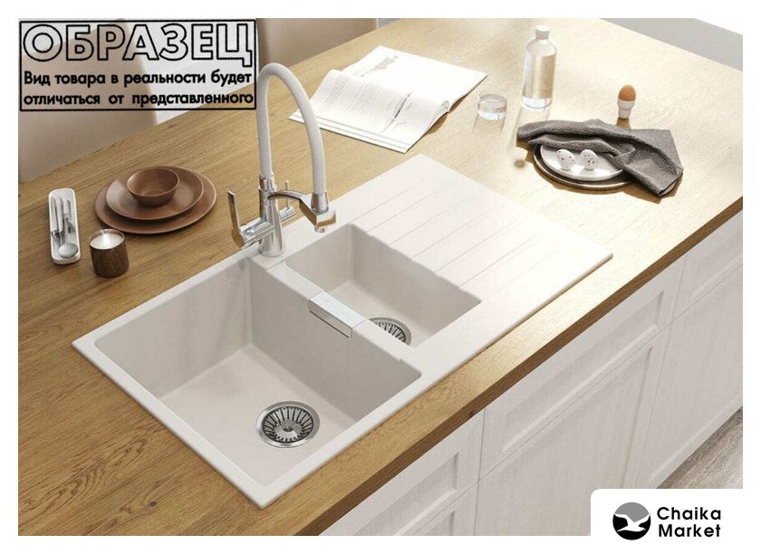 врезная на столешницу, искусственный камень, размеры: 58x50 см, глубина чаши: 20 см, в шкаф шириной от 60 см, клапан-автомат