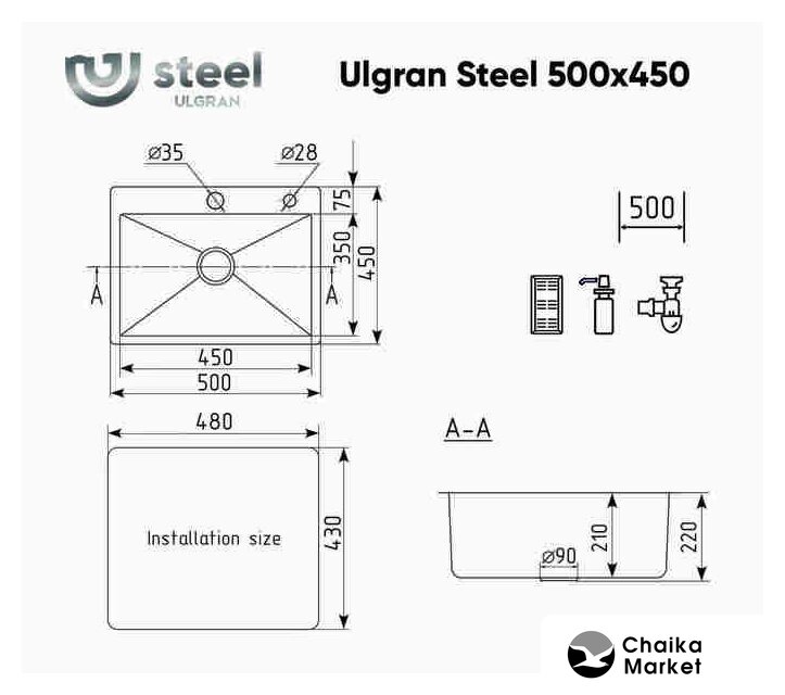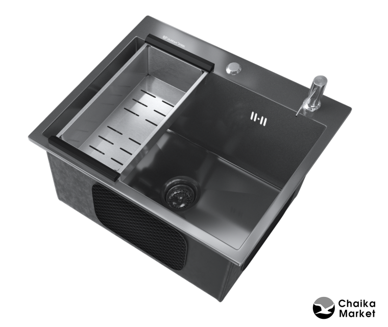 Комплектация | коландер (нержавеющая сталь AISI 304), дозатор для моющего средства (цвета брашированной стали) |