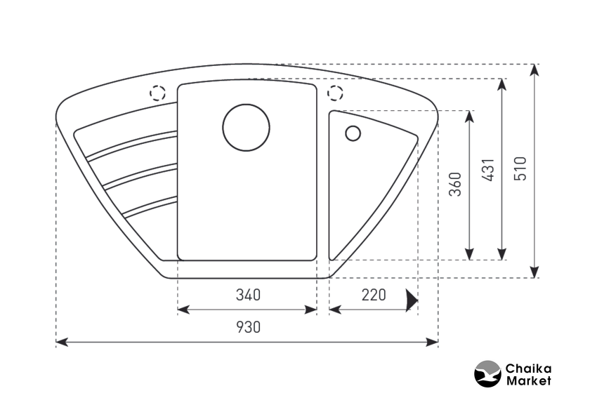 врезная на столешницу, искусственный камень, размеры: 93x51 см, в шкаф 90 см