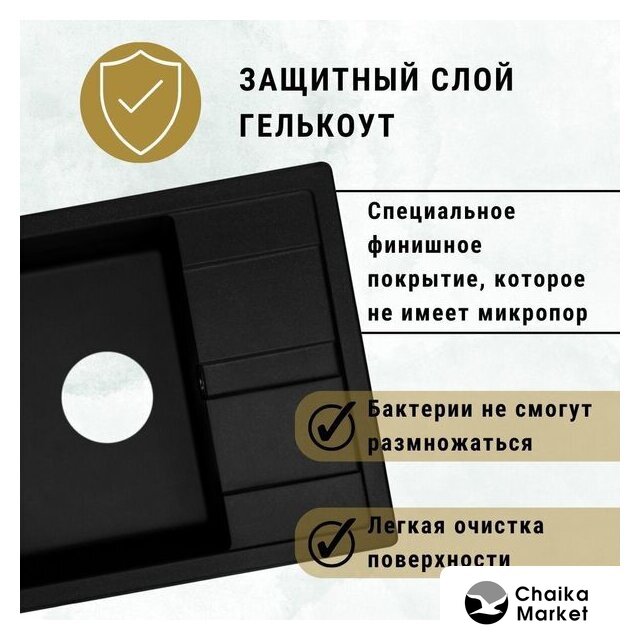 врезная на столешницу, искусственный камень, размеры: 58x49 см, в шкаф 50 см