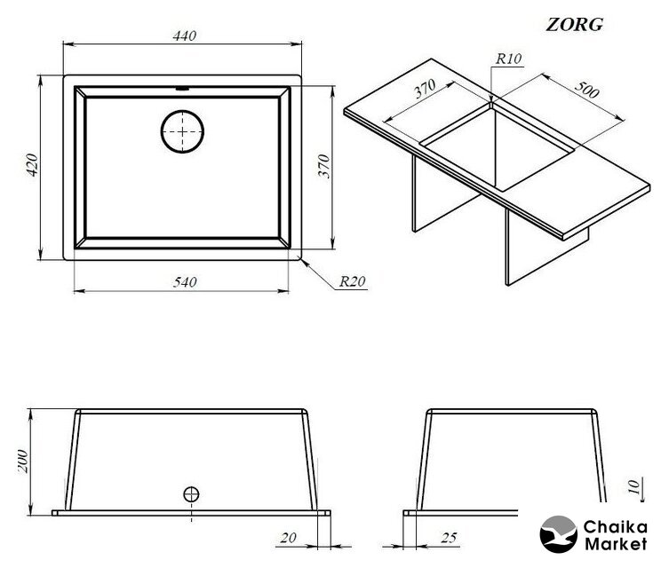 врезная на столешницу/врезная под столешницу, нержавеющая сталь, фактура: матовая, размеры: 45x44 см, глубина чаши: 20 см, в шкаф шириной от 50 см
