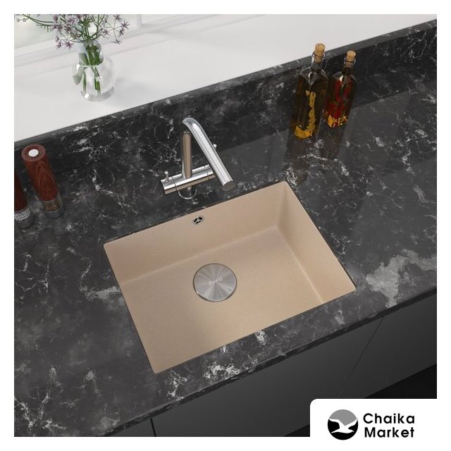 врезная на столешницу/врезная под столешницу/врезная вровень со столешницей, искусственный камень, размеры: 55.5x46 см, глубина чаши: 21 см, в шкаф шириной от 60 см