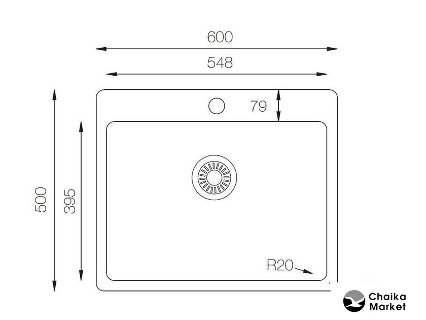 врезная на столешницу, нержавеющая сталь, фактура: матовая, размеры: 45x50 см, глубина чаши: 20 см