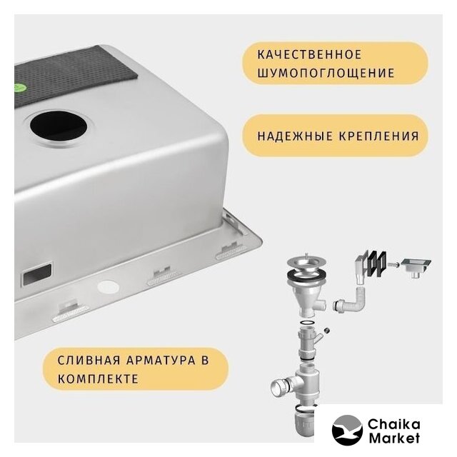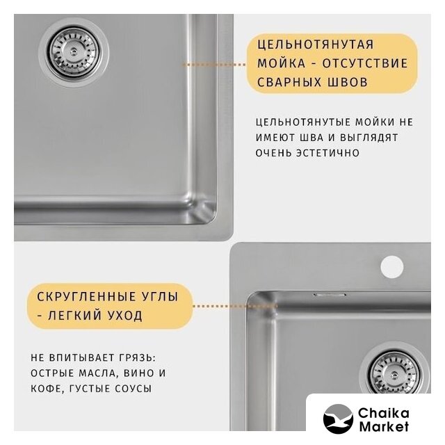 врезная на столешницу/врезная под столешницу, нержавеющая сталь, фактура: матовая, размеры: 44x45 см, глубина чаши: 20 см, в шкаф шириной от 50 см