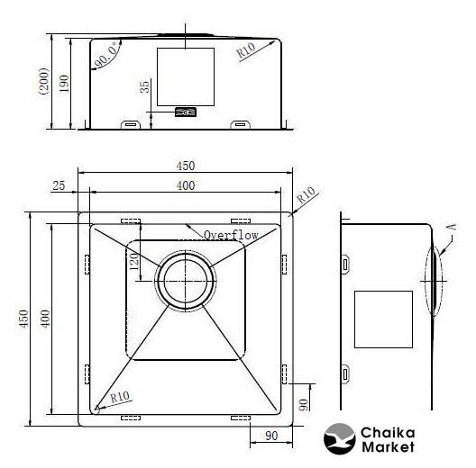 врезная на столешницу, нержавеющая сталь, размеры: 52x49 см, глубина чаши: 23 см, в шкаф шириной от 60 см