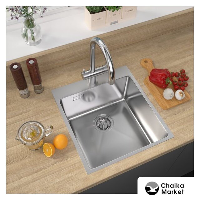 врезная на столешницу, нержавеющая сталь, фактура: матовая, размеры: 50x50 см, глубина чаши: 20 см, в шкаф шириной от 50 см