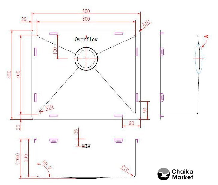 врезная под столешницу, искусственный камень, размеры: 40x50 см
