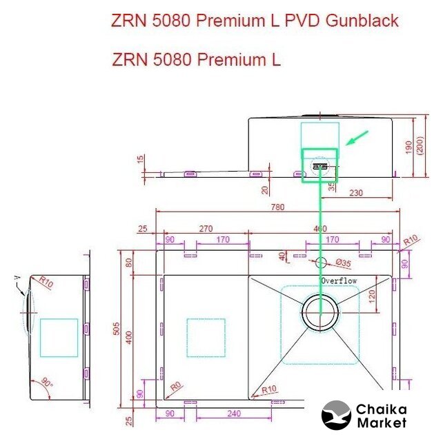 врезная на столешницу, нержавеющая сталь, размеры: 78x50.5 см, в шкаф 60 см