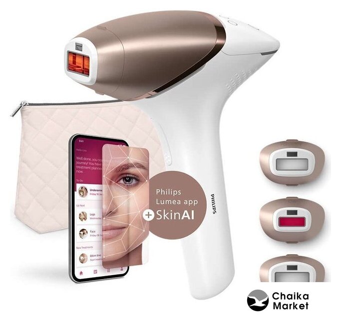 Комплект поставки | Аппарат IPL серии 9900 для удаления легких волосИнтеллектуальная насадка для эпиляции лицаУмная насадка для точного удаления волосПриложение Lumea IPL с эксклюзивными функциями SkinAIФутляр |