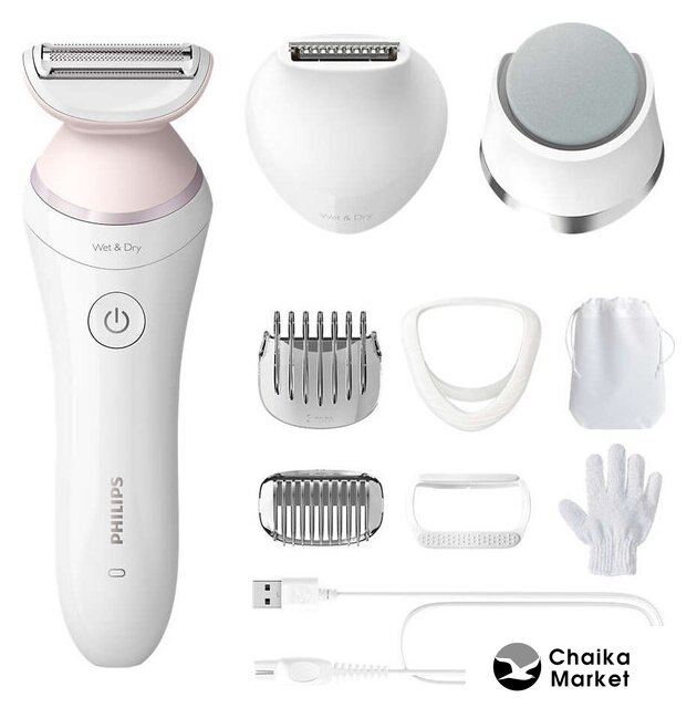 Комплект поставки | Чистящая щеткаГребень для стрижкиМягкое скользящее креплениеНасадка для подтяжки кожиОтшелушивающая перчаткаГоловка для стрижки бикиниНасадка-триммер для бикиниПедикюрная пилка |