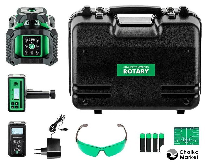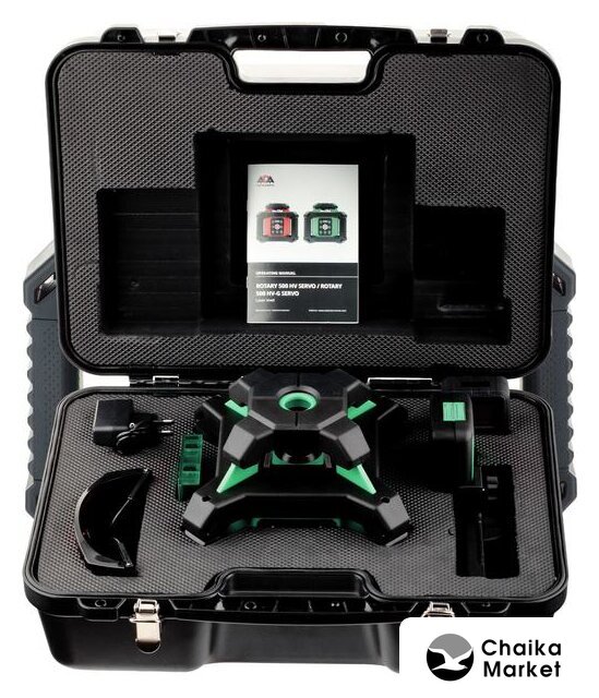Комплект поставки | Лазерный нивелирПриемник лазерного лучаКрепления приемника лазерного лучаПульт ДУЛазерная мишеньЛазерные очкиЗарядное устройствоПластиковый кейсИнструкция |