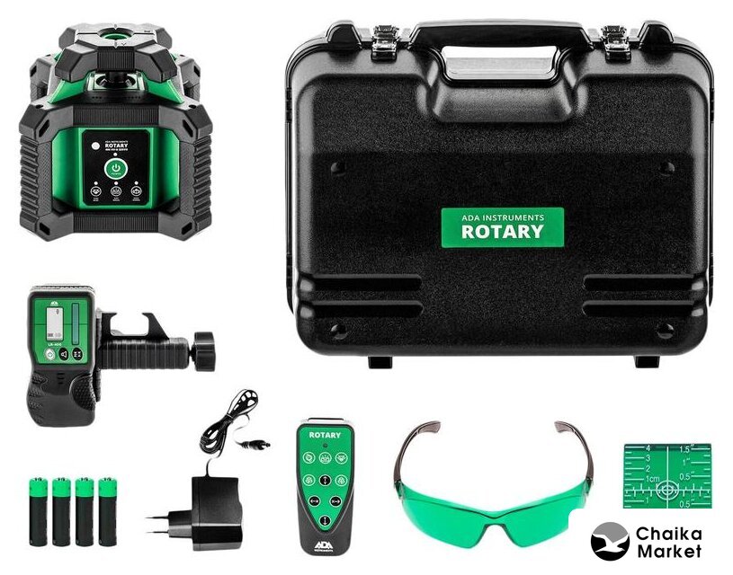 Комплект поставки | Лазерный нивелирПриемник лазерного лучаКрепления приемника лазерного лучаПульт ДУЛазерная мишеньЛазерные очкиЗарядное устройствоПластиковый кейсИнструкция |
