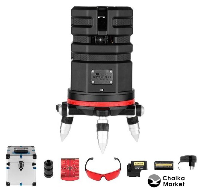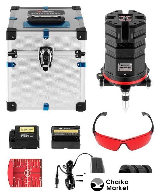 Комплект поставки | - Лазерный уровень- Литиевый аккумулятор- Зарядное устройство- Лазерные очки- Магнитная мишень- Винт-удлинитель- Батарейный отсек- Кейс- Руководство по эксплуатации |