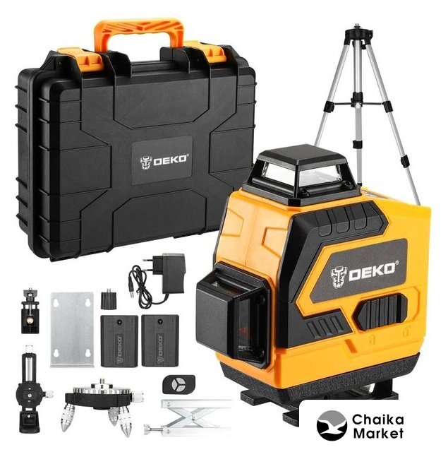 Комплект поставки | Лазерный уровень - 1 шт.Штатив - 1 шт.Адаптер для штатива - 1 шт.Фиксатор - 1 шт.Пульт дистанционного управления - 1 шт.Металлическая пластина для крепления - 1 шт.Кронштейн (состоит из 2х деталей) - 1 шт.Зарядное устройство - 1 шт.Подъемная платформа - 1 шт.АКБ - 2 шт.ИнструкцияКейс |